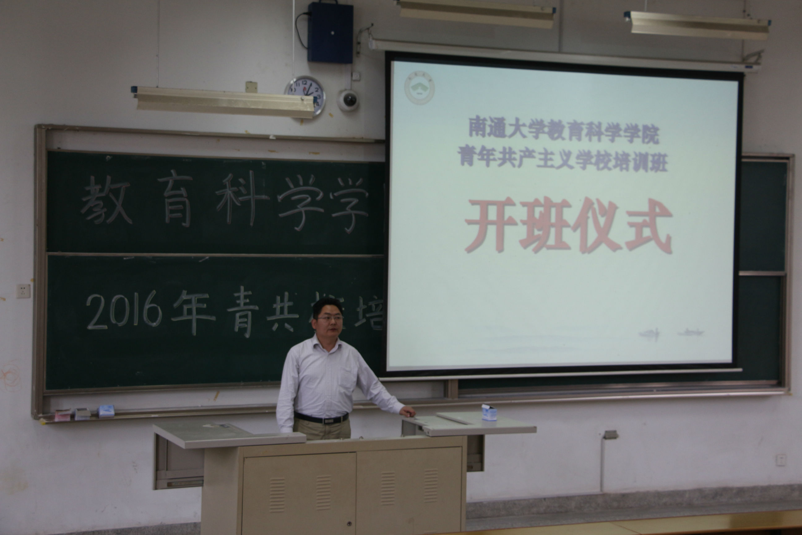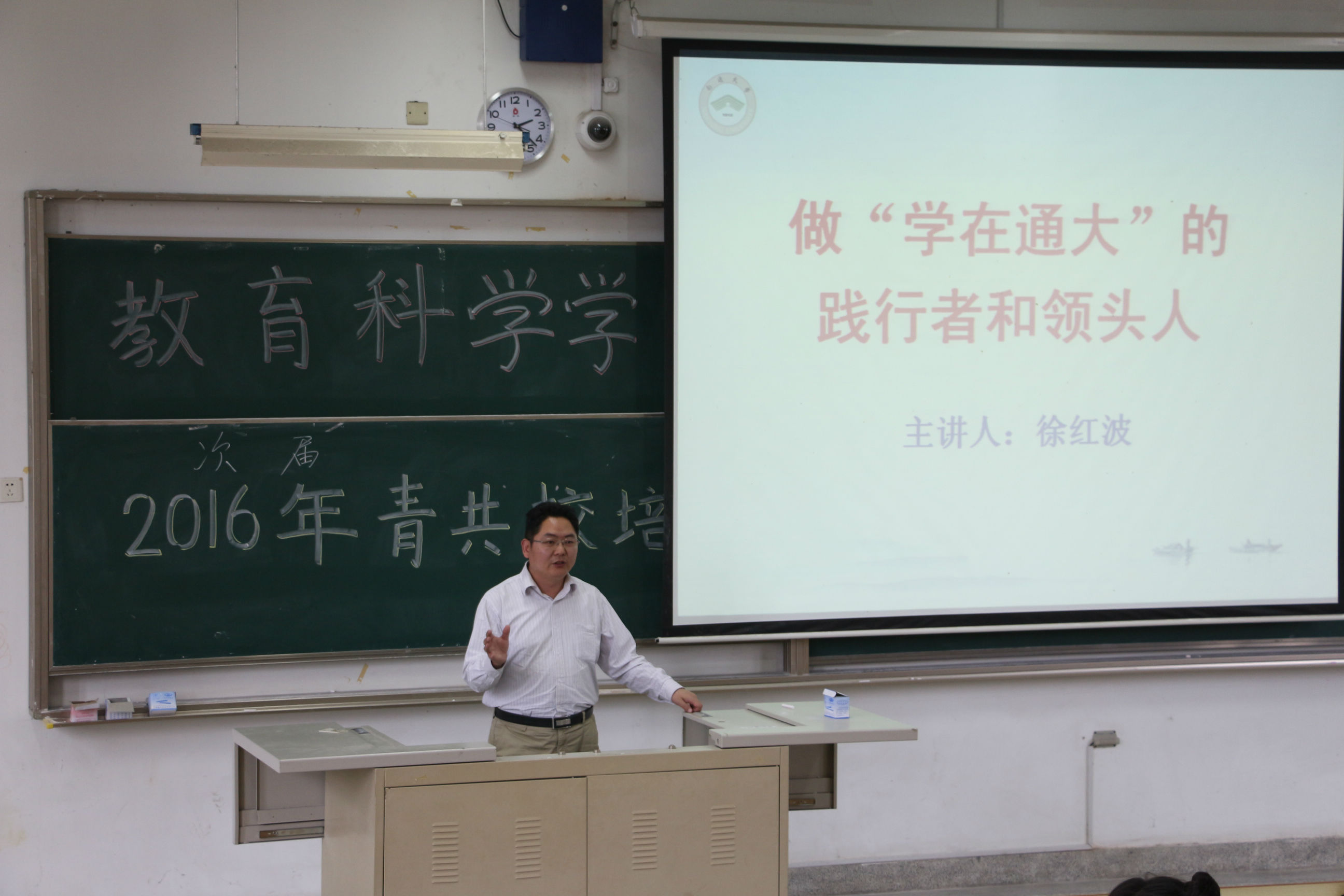 4月18日下午14:00,人妻视频 在主校区4号教学楼107室举行了青年共产主义学校培训开班仪式,开班仪式由人妻视频 党总支部副书记徐红波老师主持并进行了开班第一讲:“做学在通大的践行者和领头人”专题讲座,教科院全体团委学生会成员参加。