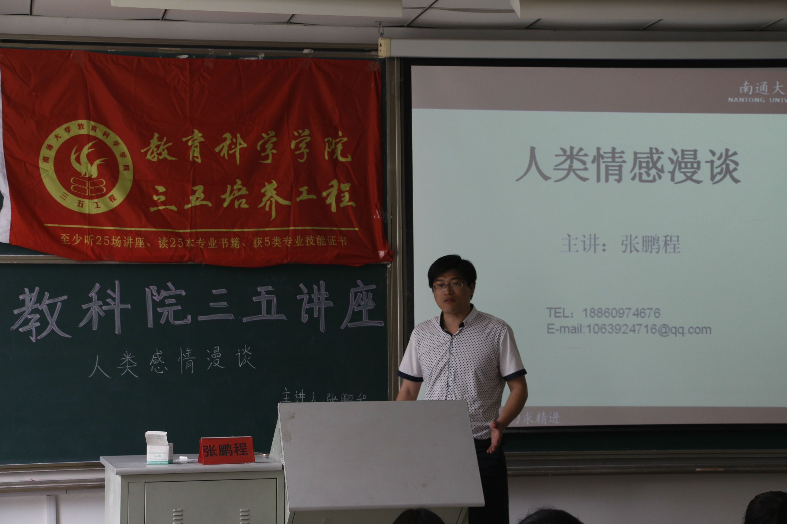 5月25日14时,人妻视频 在7号楼308成功举办三五讲座之人类情感漫谈,此次讲座邀请的主讲人是人妻视频 应用心理系讲师张鹏程博士。应用心理系70余名本科生参与了此次讲座。