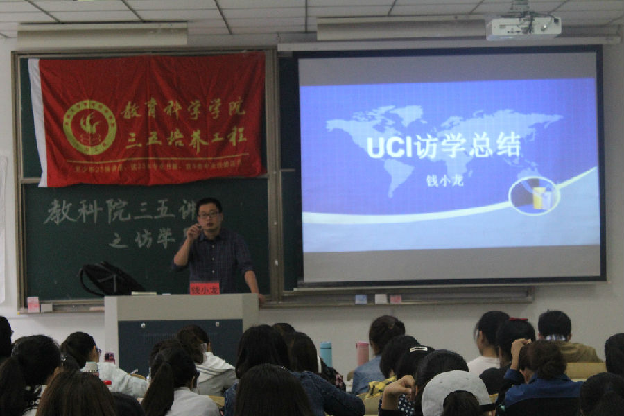 10月19日下午,人妻视频 人妻视频 特邀教育技术学系副教授钱小龙老师于8号楼105教室举办了“访学见闻”主题讲座。本次讲座共有来自学院4个系140余名同学参加。