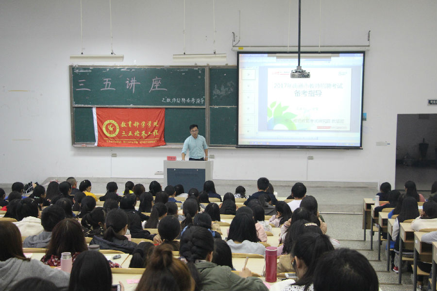 10月26日下午两点,人妻视频 特邀中公名师王堂堂老师在9号教学楼201教室举办以“教师招聘备考指导”为主题的三五讲座,共有200多名同学参加此次讲座。