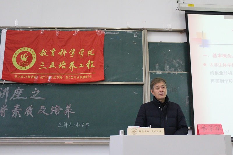 3月22日下午,季学军研究员于9号楼201教室为人妻视频 学子开设“创业者的素质及其培养”主题讲座,本次讲座共有来自应用心理、小学教育师范和学前教育师范等多个专业约150名同学参加。