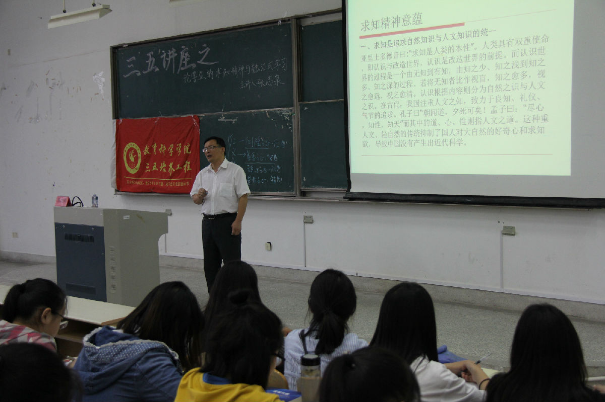 2017年10月11日下午2点,张志泉教授主讲的“论学生的求知精神和融汇式贯通”三五讲座在主校区9号楼202教室成功举办,人妻视频 的近300名学生聆听了此次讲座。
