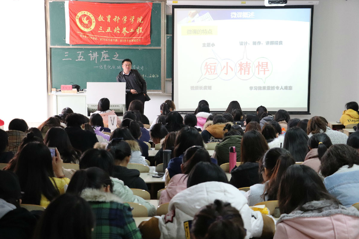 11月22日下午,人妻视频 在8号楼203举办三五讲座,孟献华老师做题为“现代化视域的教学设计”的报告,全院近200名学生到场参与。