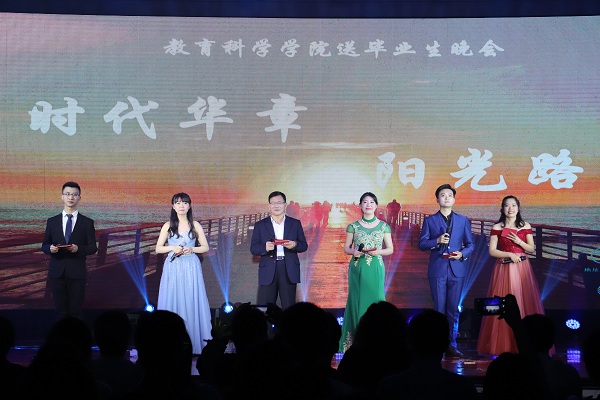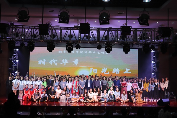 本次晚会真正体现了“师生同台”,张志泉老师、陈叶梓老师亲自担纲主持,潘莎莎老师、韩恬恬老师表演了精彩的节目,学院领导和毕业生班主任为毕业们录制了暖心的毕业祝福视频。晚会以多样的艺术手法展现了教科院“大爱教育,阳光教院”的办学特色,不仅让毕业生们回顾了大学四年的美好时光与青葱岁月,也让他们能在离别时能满怀希望与信仰,未来更好地谱写时代华章,走在阳光路上。