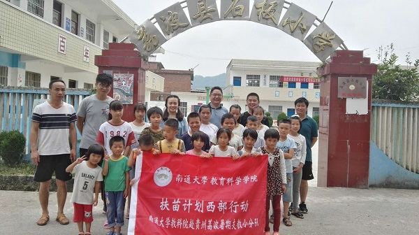 1900公里之外的贵州荔波县城,扶苗计划西部行动也在同步开展活动。2018年7月12日,扶苗计划西部行动——教科院赴贵州荔波暑期支教小分队9名同学在人妻视频 党总支副书记、副院长徐红波老师的带领下开展暑期支教活动。为了支援西部贫困地区教育,关爱当地留守儿童,提升当地的教育教学水平,人妻视频 与荔波县教育局正式签订顶岗支教协议。双方约定从9月开始,人妻视频 将分批派遣两批学前教育和小学教育的研究生和优秀本科生赴当地乡村小学和幼儿园顶岗支教,支援当地基础教育建设,为东西部地区教育合作进行了有益的尝试和探索。