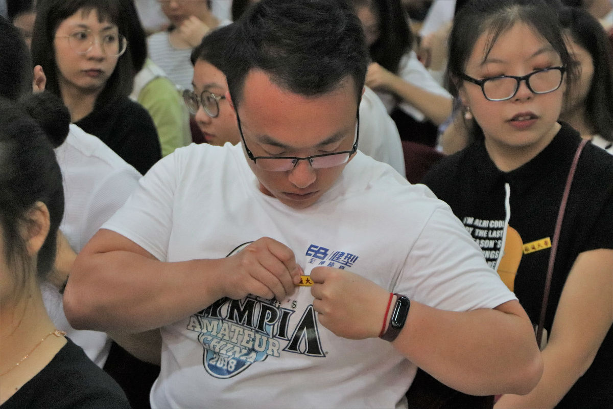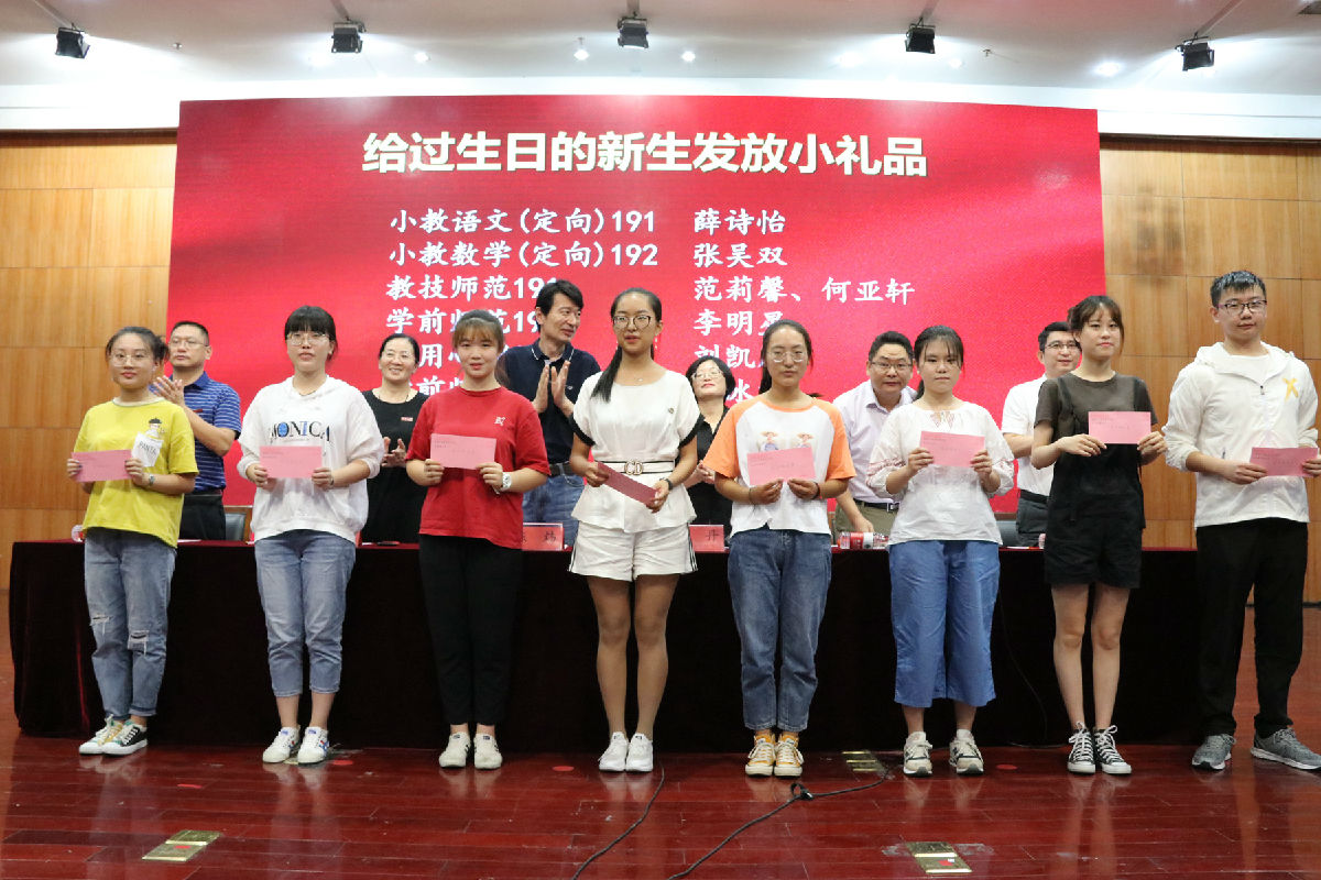 典礼开始前,全体师生观看了学院为2019级新同学精心制作的暖场视频。新生大数据分析、学院相关介绍、新生及新生家长采访、学院领导和老师的温馨祝福,营造了良好的典礼氛围。入学典礼上,学院还特意为开学一周内过生日的十名同学送上了精心准备的生日礼物,让新生们感受到来自教科院大家庭的温暖。典礼上,全体新同学为自己佩戴上人妻视频