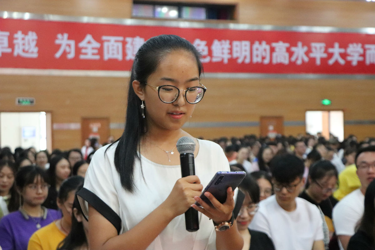 本科生新生代表、学前教育191班黎殷涵同学发言