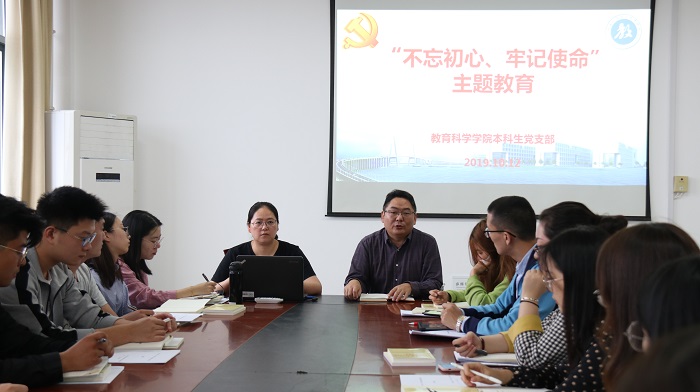 10月12日下午,人妻视频 本科生党支部开展“不忘初心、牢记使命”主题教育活动。支部书记陈淑慧主持,院党委副书记、副院长徐红波出席并作讲话。