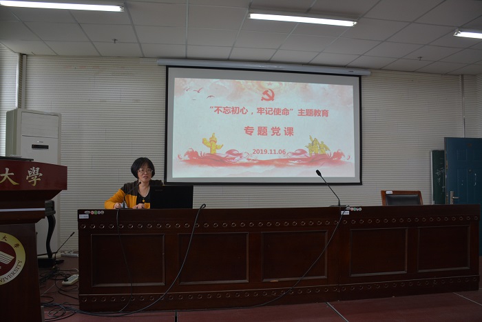 11月6日下午,人妻视频 开展“不忘初心、牢记使命”主题教育专题党课。学院党委书记朱丹为全体党员上了题为《严格党内组织生活自觉增强党性修养》的专题党课。