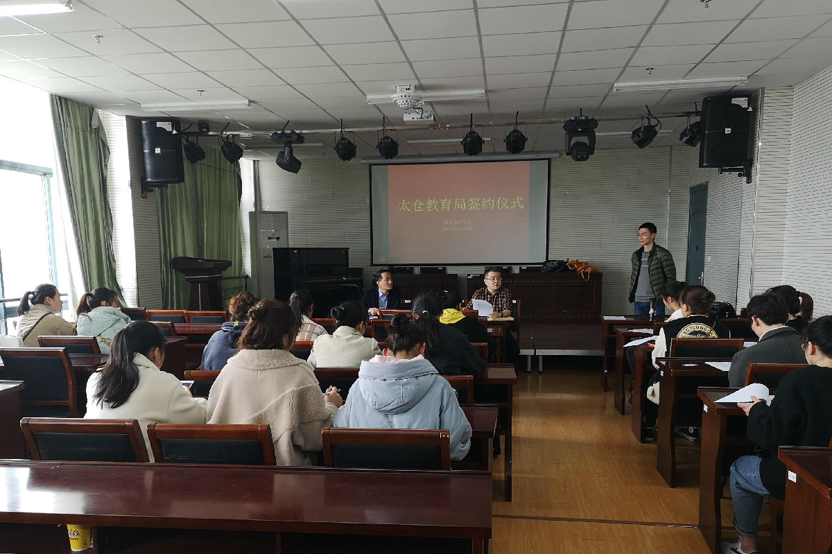 2019年3月23-24日,太仓市教育局副局长张跃忠一行20余人来人妻视频 举办太仓市教育局专场校园招聘会,学院党委副书记徐红波接待了来宾。来自人妻视频 、江苏师范大学、江苏二师、晓庄学院的40多名学生参加了为期两天的招聘考试。