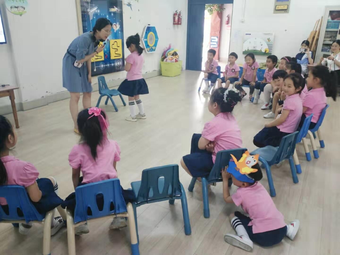 6月24日上午,学前教育系韩恬恬老师带领学前161班全体学生走进南通市五山小学幼儿园,将基于课程游戏化设计理念的音乐原创课例入园实践,与一线教师共同研讨幼儿园音乐教学新思路。学前教育系学生新颖的教学设计与良好的教师素养获得了一线教师的高度好评
