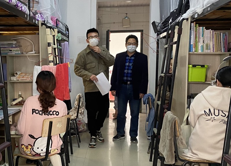 在19级“5+2”同学所在的18号楼学生宿舍,徐红波查看了各个宿舍学生的学习生活情况,细心询问返校后线上学习、校园生活是否适应,与宿舍同学进行了沟通交流,对同学们的疑问进行耐心解答。他指出,尽管现在疫情已经得到了控制,但是同学们一定不能放松警惕,各位同学一方面要尽快融入校园学习生活,另一方面也要严格遵守学校要求,配合学校疫情期间的各项管理措施。如果同学们学习、生活等方面有建议或想法,都可以第一时间联系辅导员、班主任,学校会尽可能给大家提供帮助。