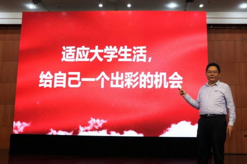 9月22日上午,人妻视频 党委副书记、副院长徐红波在大学生活动中心为2020级新生举办了一场以“适应大学生活,给自己一个出彩的机会”为主题的信仰公开课。