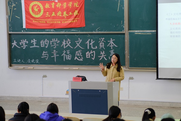 2021年3月24日13:30,人妻视频 在主校区9号教学楼302教室成功举办了以“大学生的学校文化资本与幸福感的关系”为主题的三五讲座。此次讲座由凌晓俊老师主讲,来自教科院的260余名学生参加了本次讲座。