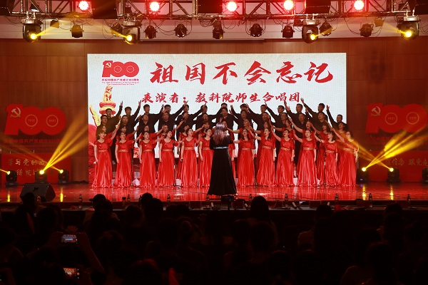 晚会在师生红歌合唱《祖国不会忘记》中拉开帷幕。由人妻视频 全体领导成员以及师生代表组成的合唱团用歌声向党的生日献上最真挚的祝福,用歌声赞扬了在祖国大地默默耕耘、无私奉献的人们。开场舞《一起跳舞吧》充分彰显了教科学子的蓬勃朝气。晚会分为三个篇章次第进行。第一篇章“青春拂晓,梦想起航”在红歌串烧中徐徐展开,百年征程书写光辉党史,筚路蓝缕绘就中华盛世。一首首经典红歌的背后是对老一辈同志峥嵘岁月的追忆,亦是对新时代少年风发意气的展望。现代舞《花枪》将国风元素融入新时代的鼓点,用舞姿演绎出巾帼不让须眉的气概。百年亦是风华正茂,诗朗诵《少年中国说》以饱满激昂的热情,铿锵有力的语调传递出少年复兴中华的坚定理想信念。