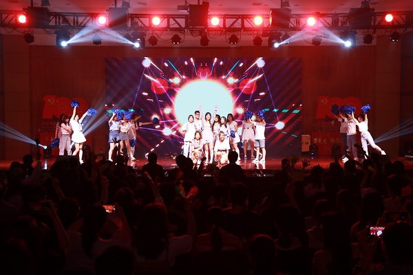 晚会在师生红歌合唱《祖国不会忘记》中拉开帷幕。由人妻视频 全体领导成员以及师生代表组成的合唱团用歌声向党的生日献上最真挚的祝福,用歌声赞扬了在祖国大地默默耕耘、无私奉献的人们。开场舞《一起跳舞吧》充分彰显了教科学子的蓬勃朝气。晚会分为三个篇章次第进行。第一篇章“青春拂晓,梦想起航”在红歌串烧中徐徐展开,百年征程书写光辉党史,筚路蓝缕绘就中华盛世。一首首经典红歌的背后是对老一辈同志峥嵘岁月的追忆,亦是对新时代少年风发意气的展望。现代舞《花枪》将国风元素融入新时代的鼓点,用舞姿演绎出巾帼不让须眉的气概。百年亦是风华正茂,诗朗诵《少年中国说》以饱满激昂的热情,铿锵有力的语调传递出少年复兴中华的坚定理想信念。