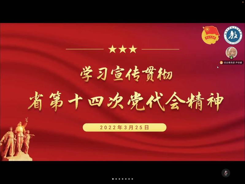 3月25日,人妻视频 团委学生会通过腾讯会议顺利召开了省第十四次党代会精神学习会。本次学习会由组织部部长刘一凡主讲,由综合事务部学员尹徐睿主持。教科团学全体学生干部及第三届新生骨干训练营全体学员参加了本次会议。