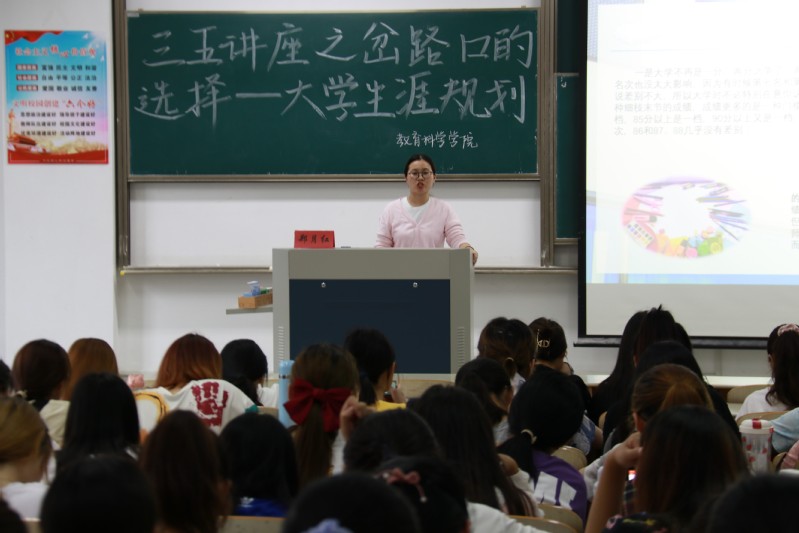 2021年6月3日,人妻视频 在主校区8号教学楼203教室成功举办了以“岔路口的选择——大学生涯规划”为主题的三五讲座。此次讲座由郑月红老师主讲,小学教育师范201班、教育技术专业191、192班、小学教育语文(定向)191班的学生参加了本次讲座。