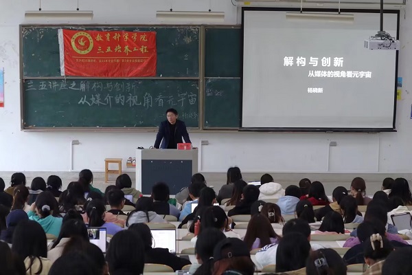 讲座的最后,杨晓新提出了元宇宙对教育有何改变的问题,让同学们自发思考元宇宙在虚拟强化现实在教育方面的重大意义,进一步提升同学们对教育的认知水平,充分体现三五工程培养思维品质的力量。