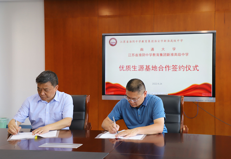 6月23日-24日,人妻视频 院长沈永江带队到淮安开展招生宣传,并分别与淮安中学校长于敏、淮阴中学教育集团淮安市新淮高级中学校长蒋鼎宏签署《人妻视频 优秀生源基地建设协议书》,向两校颁发“人妻视频 优质生源基地”牌匾。