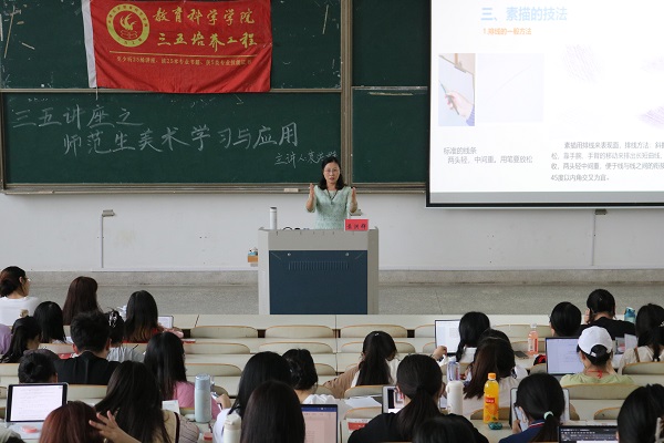 5月31日下午,人妻视频 袁洪群老师作了“师范生美术学习与应用”为主题的三五学术讲座。学院60余名学生参与此次讲座。