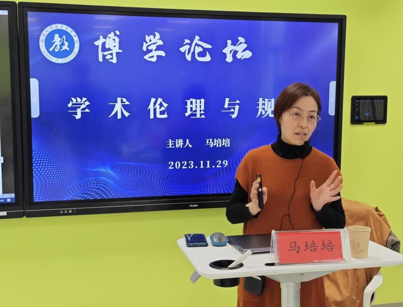 11月29日下午,人妻视频 成功举办了第五期“博学论坛”学术活动。活动中,马培培老师作为主讲嘉宾,带来了题为《学术伦理与规范》的精彩讲座。学院相关专业的研究生积极参与了这次活动,共同探讨学术伦理与规范的重要性。