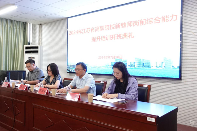 7月10日,2024年江苏省高职院新教师岗前综合能力提升培训在我校开班。人妻视频 党委书记朱丹、人妻视频 职业教育与区域发展研究所所长邓宏宝、人妻视频 职教所副所长濮海慧及来自省内31所高职院校50名参训学员出席了开班典礼。