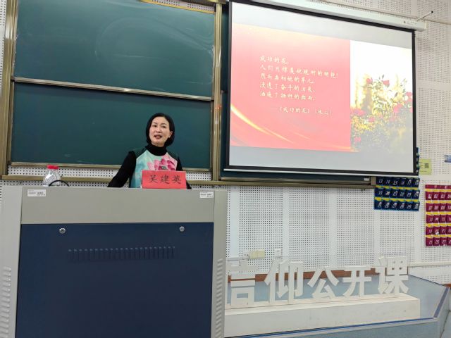 吴建英在讲座开始之初播放了一首名为《存在》的歌曲,以生动的方式引出了本次讲座的主题:我该如何存在。吴建英由自己为母校写的信《此心安处是吾乡》引入,将本次讲座分为两个部分:一是以树的姿态成长,二是如何成长。在第一部分,吴建英以大树的成长为意象,将教师的成长分为三个部分,分别为:随风播种,破土而出,渴望参天。她借大树为例向同学们讲述了教师成长的三个阶段。在介绍了教师的成长过程之后,吴建英又提出了有助于教师成长的方式。她认为教师首先要做到“爱我所做”,教师的生命在课堂,只有真正的爱上了教学才有机会成为一名优秀的教师。为此,吴建英还向同学们介绍了细读实录法等有关的学习方法。在此基础上,吴建英提出“做到极致,就是卓越”的看法。她认为教师要有坚定的教育信仰,在教育领域不断突破,寻找属于自己的风格,而且教师必须秉承自知无知的理念,用永不满足的姿态去学习,让永不满足成为人生底色。