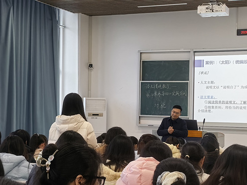 3 月 17 日上午,人妻视频 教授公开课暨课程思政课展示活动如期开展。陆平教授为 22 级小学教育专业 100 余名乡村小学定向生,执教示范课《语文情境教学 —— 核心素养导向的实践范例》。