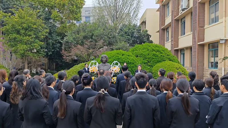 情境润心,师魂永续。活动伊始,全体肃立默哀,追思先生事迹。随后,师生代表敬献花篮,学院党委书记曹阳整理花篮缎带,全体师生怀着崇敬的心情向李吉林先生塑像三鞠躬,敬献鲜花。