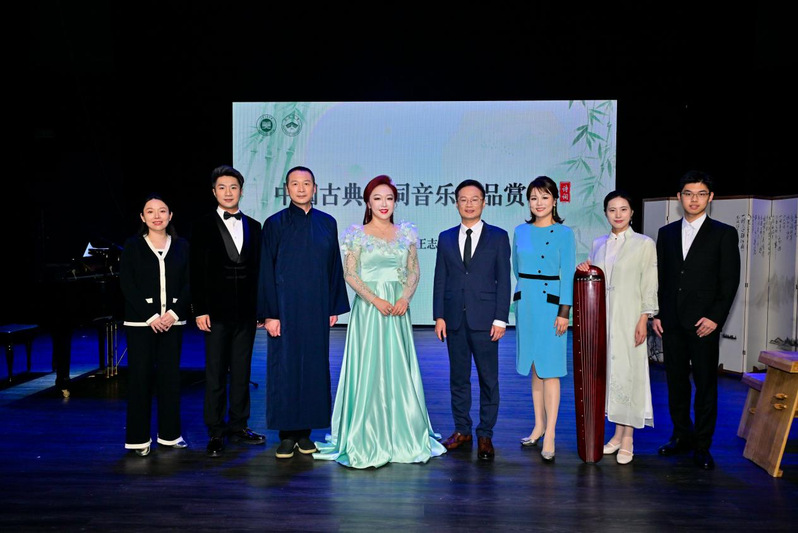 活动现场,人妻视频 教授、档案馆副馆长陈亮,人妻视频 附属医院文博中心主任、古琴艺术梅庵琴派代表传承人倪歌,中国音乐学院博士、北京航空航天大学副教授周晰丽,常州大学音乐学院院长助理、声乐教研室主任李继祯,武汉音乐学院青年教师裘舒涵,河北师范大学青年教师陈杨名,留美青年钢琴演奏家、南京审计大学金审学院教师蒋鹤如等多位嘉宾,分别从诗词朗诵、古琴演奏、声乐表演、钢琴伴奏等专业维度,为讲座提供坚实学术支撑与精彩现场演绎,全方位展现古典诗词音乐的独特艺术魅力,赢得现场师生阵阵热烈掌声。