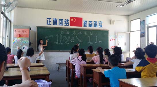 2015年7月10日,人妻视频 书法研习社“翰墨书香 书法传情”暑期社会实践小分队成员前往雁滨小学并教授书法的基本笔划。 小分队成员首先向孩子们示范了正确的执笔方式和坐姿,然后向孩子们讲解并展示了书法基本笔划的运笔方向,指导孩子们上黑板展示学习成果,最后引导孩子们运用这些基本笔划写下自己的名字。活动结束后小分队成员于雁滨小学合影留念。 本次活动加深了孩子们对书法的理解,增进了孩子们学习书法的兴趣,也促进了书法艺术的传播。