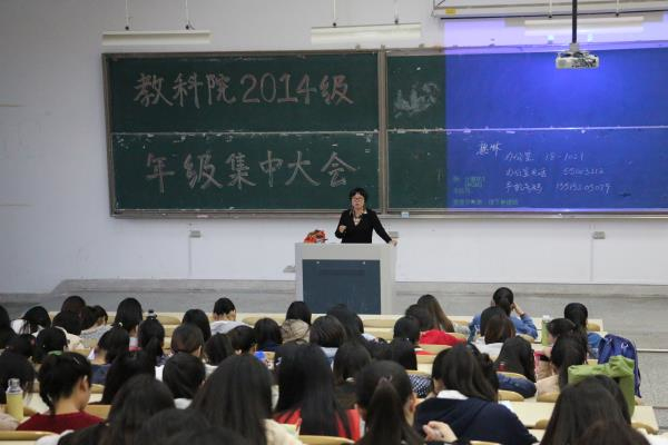 于主校区9号教学楼201室召开了2014级年级集中大会,会议学院团委书记、2014级辅导员魏琳老师主持,2014级全体学生参加。