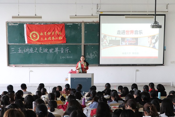 10月31日13:30,人妻视频 于9号楼201室顺利举行了以“走进世界音乐”为主题的三五讲座。本次讲座由韩恬恬老师主讲,教科院280余名学生到场参与了本次讲座。