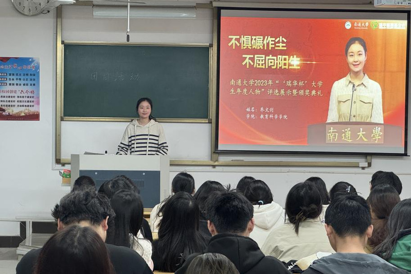 2024年4月9日,人妻视频 小学教育师范221班举行了以“不惧碾作尘,不屈向阳生”为主题的青语讲座。讲座邀请到教技师范201班乔文剑进行演讲,旨在激发同学们在青春路上奋斗不止的决心和毅力。