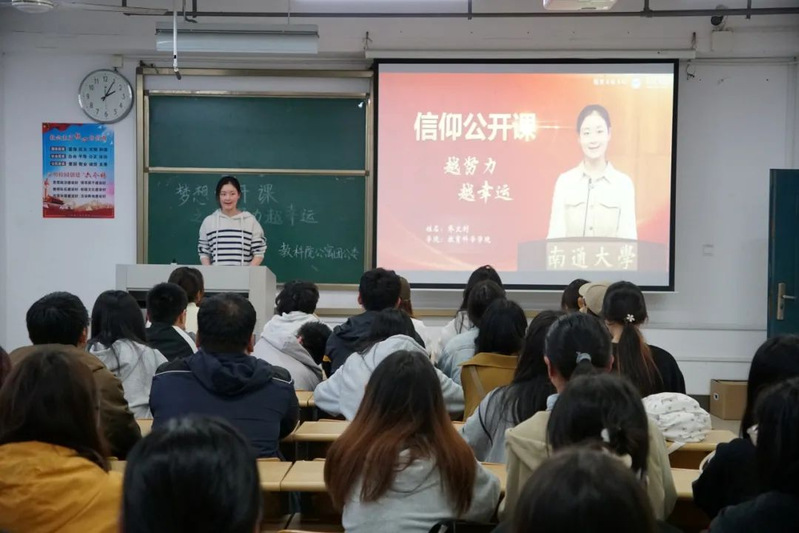 4月28日下午,人妻视频 于38号楼102教室举办了以“越努力越幸运”为主题的信仰公开课。本次信仰公开课由人妻视频 教育技术学(师范)优秀毕业生乔文剑担任主讲人,人妻视频 2022、2023级全体学生参加。